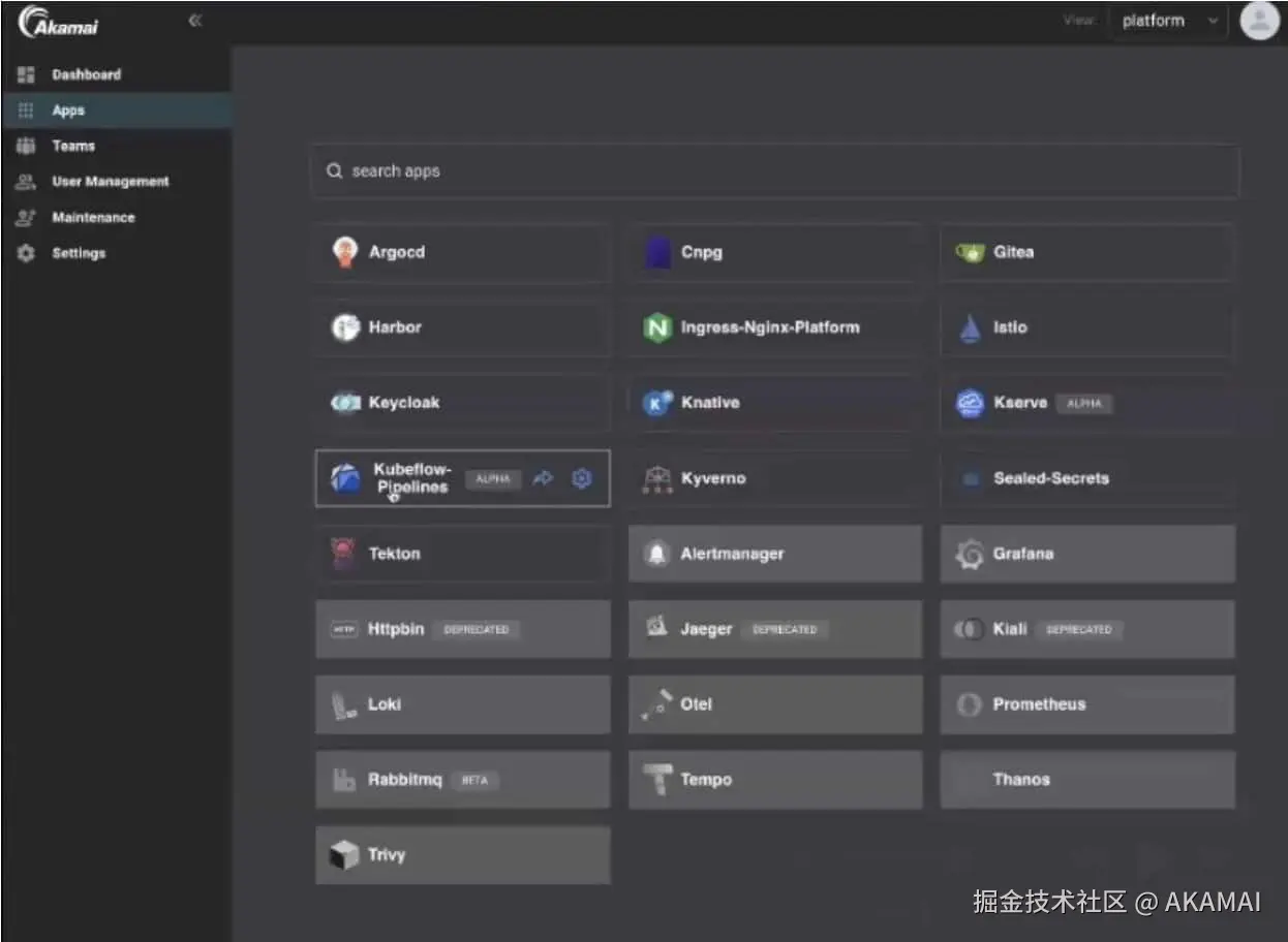图 2:Akamai 应用平台界面截图,其中展示了 AI 应用