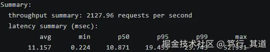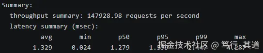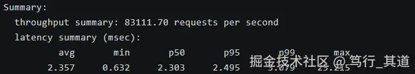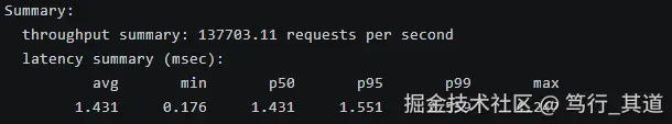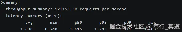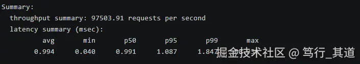 - 小 Value SET:97,504 QPS(平均延迟 0.994 ms,P99 1.847 ms)