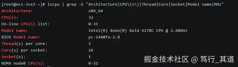 lscpu | grep -E "Architecture|CPU(s)|Thread|Core|Socket|Model name|MHz"