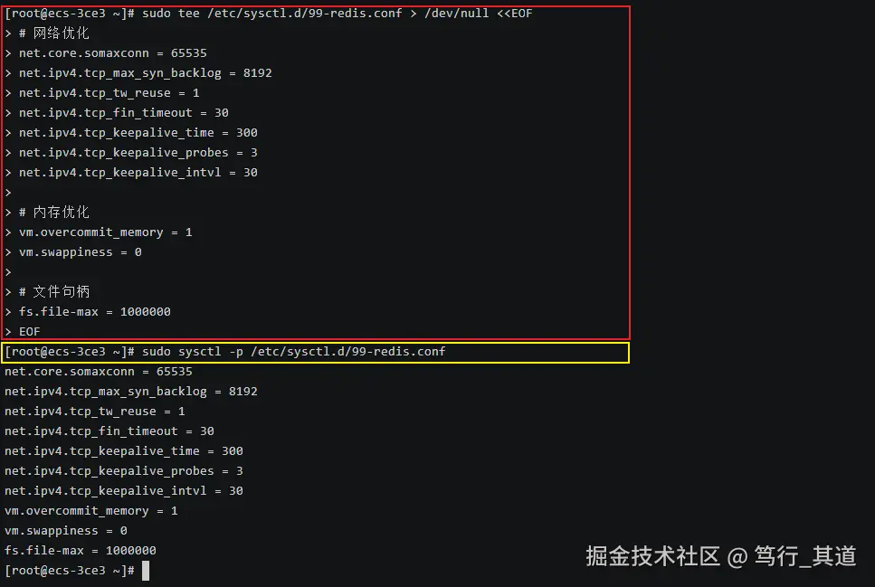 net.core.somaxconn:增大连接队列,避免高并发时连接被拒绝vm.overcommit_memory = 1:允许内存超分配,Redis fork 时需要vm.swappiness = 0:禁用 swap,避免性能抖动
