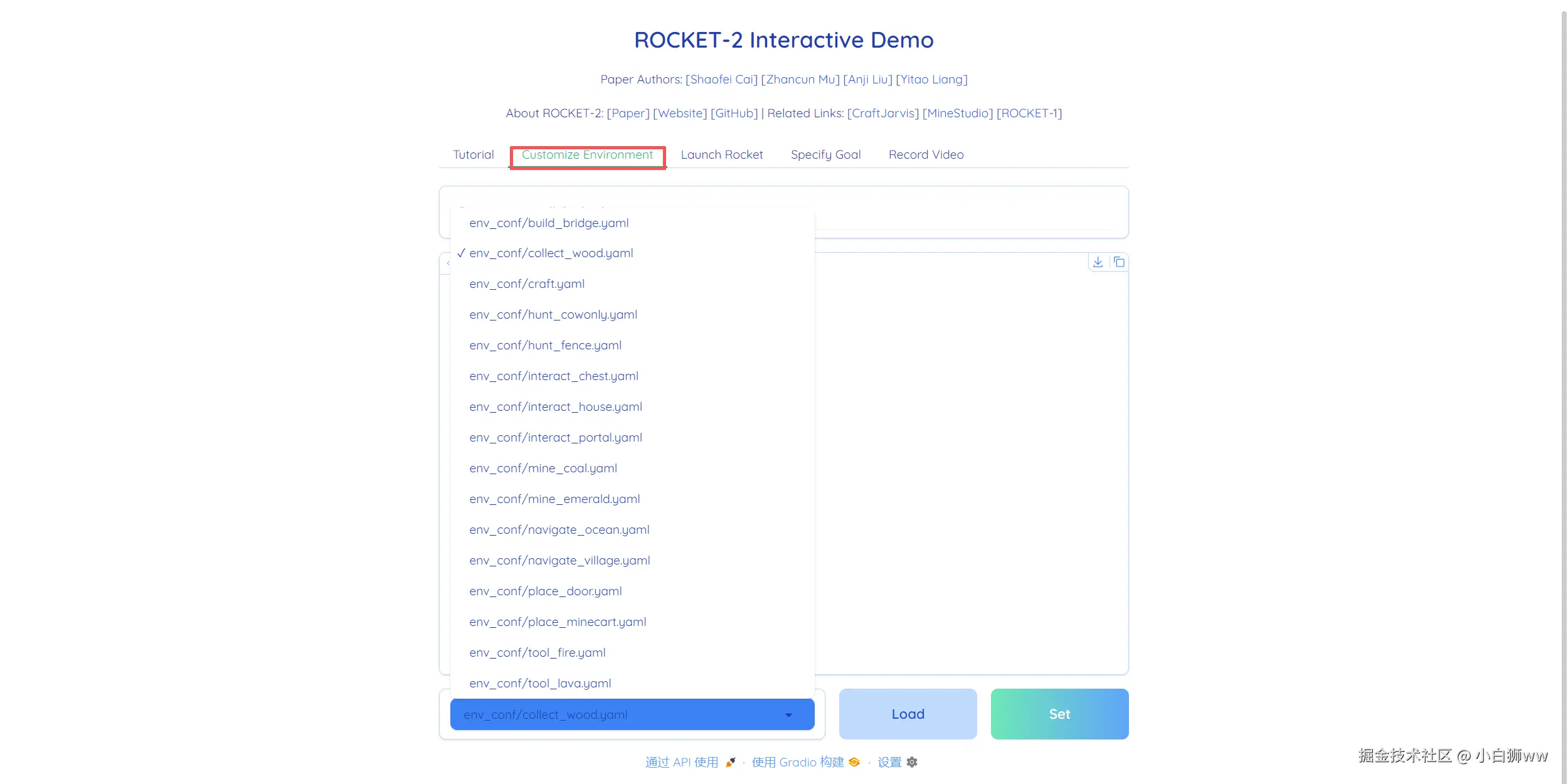 2.然后进入「Customize Environment」选择你要加载的环境。选择好之后点击「Load」加载。