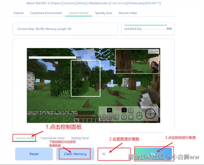 6.设置完成后,进入「Control Panel」设置推理步骤并进行推理。