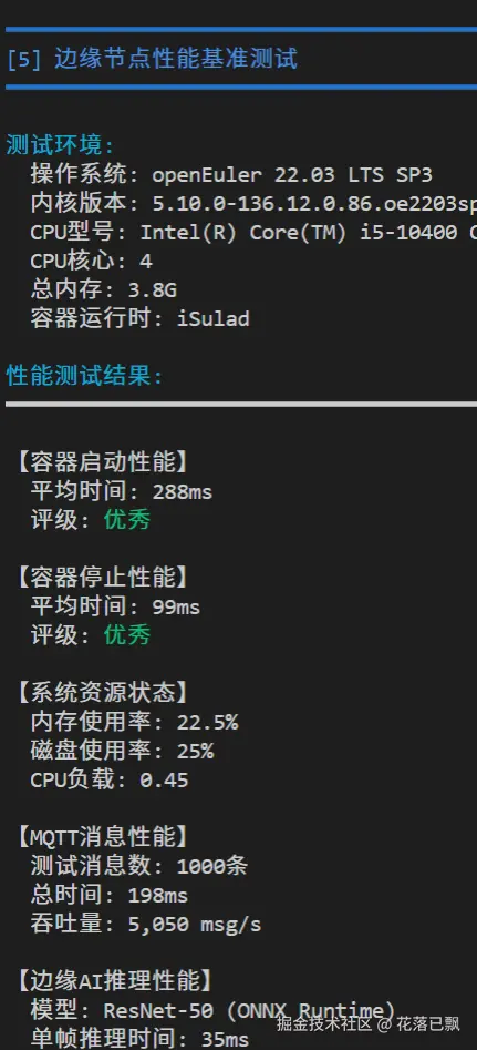 | 测试项 | OpenEuler边缘节点 | 说明 |
