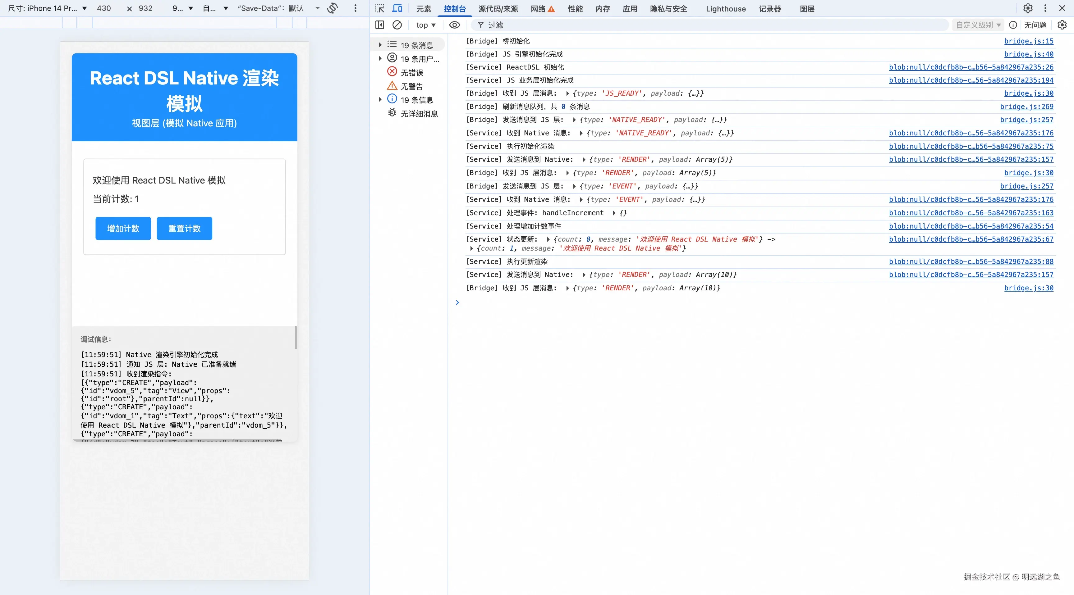 因为这个案例是用 web 应用模拟的 Native ,所以实现细节和真实场景有所不同,尽请谅解,本案例主要让读者更清晰了解渲染流程。
