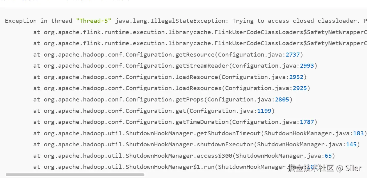 解决办法:在flink-conf.yaml中设置classloader.check-leaked-classloader: false