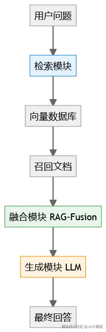 单一检索通道无法覆盖所有语义方向,RAG-Fusion 融合多种检索结果,提高覆盖率与稳定性。