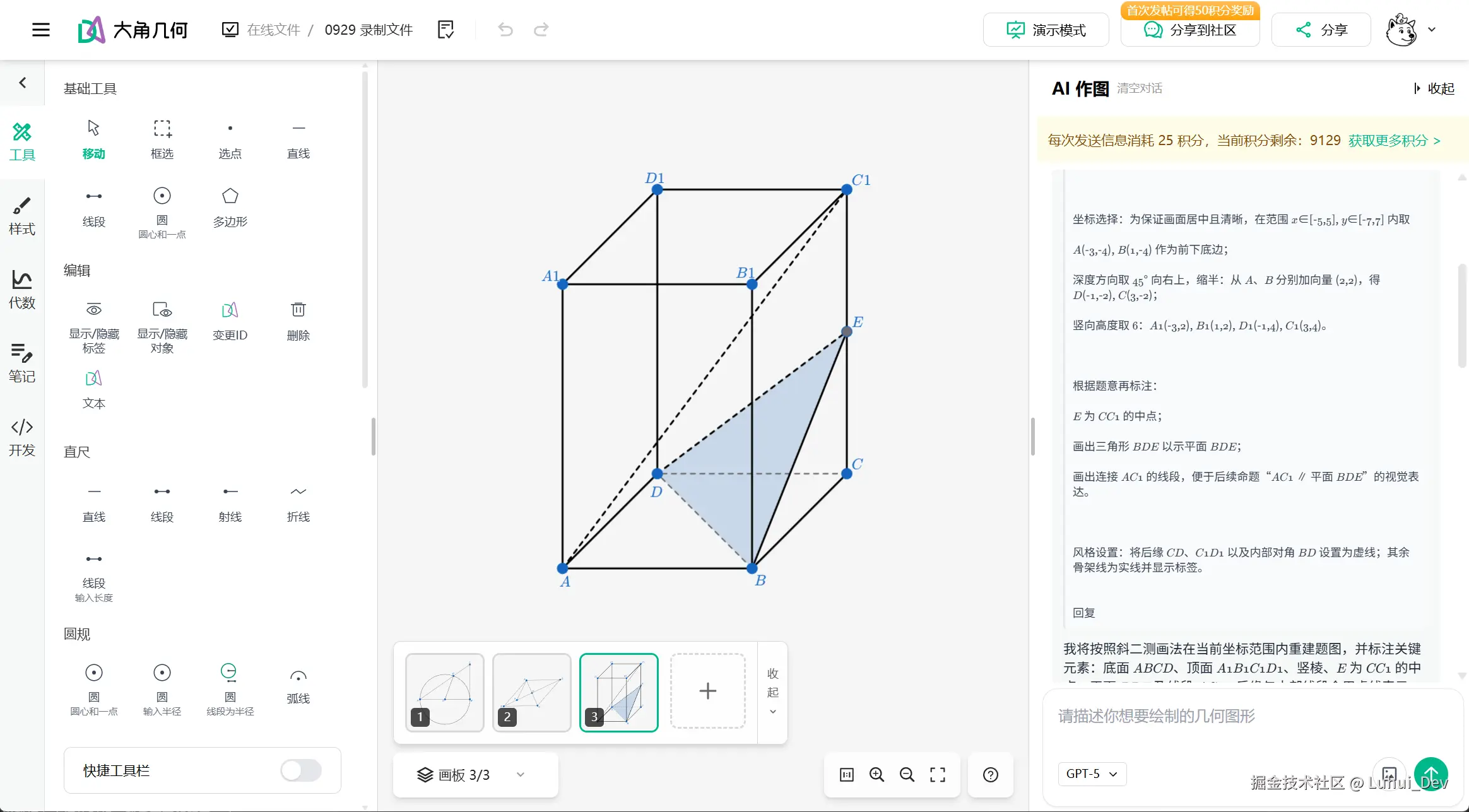 执行结果会返回布尔值或错误信息(如“点C未定义”),再交回给模型进行下一步思考。 这使得“构造—验证—修正”形成完整闭环。