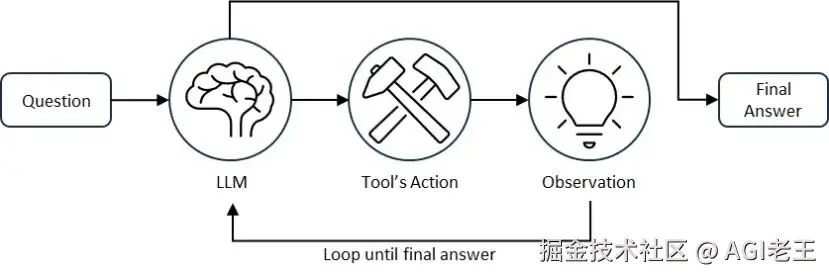 - • 观察(Observation): 分析工具返回的结果,然后为下一个 “思考” 阶段提供信息,从而闭合循环。
