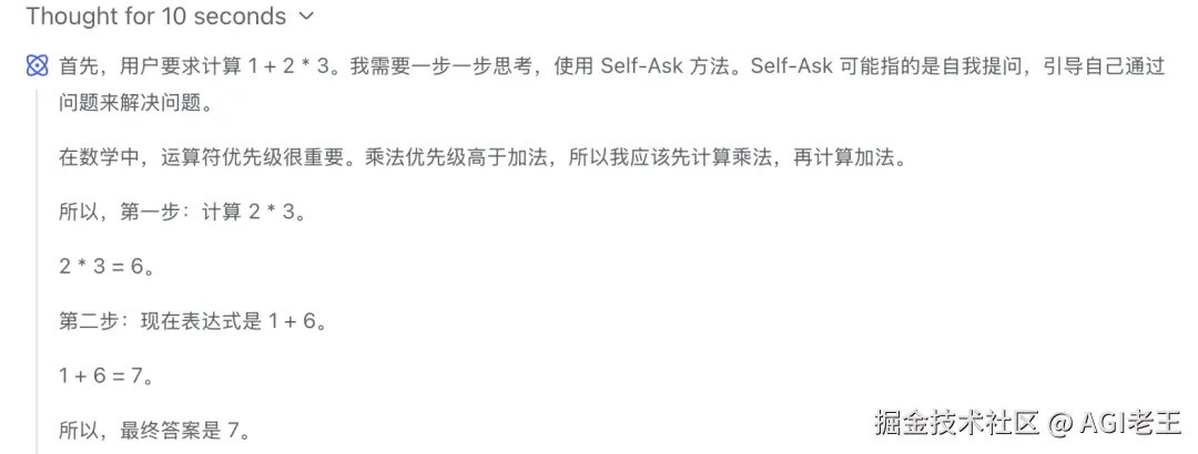 LLM进行 “一步一步思考”,能明显提高其在推理任务上的表现,CoT暴露了模型的中间推理过程,但是问题在于其贪婪的、单向的性质;它只遵循单一的推理路径,如果早期出现错误,它没有机制可以回溯或纠正自己,错误将会在链条的其余部分传播。 - • 自问(Self-Ask):