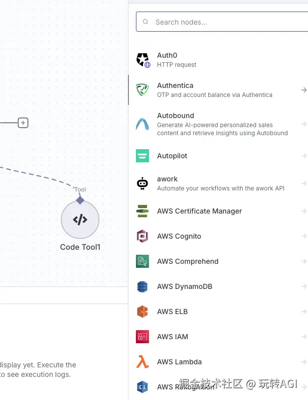 - 继承了近上百种的工具节点能力,可以将你自己之前的程序或者第三方的程序,快速的加入在这个工作流里面,让你之前的所有能力可以不零散的,快速的组合起来。包括了google日历,google docs,Notion,Aws s3, AWS Lambda等, 甚至还有矢量数据库这类型的工具。