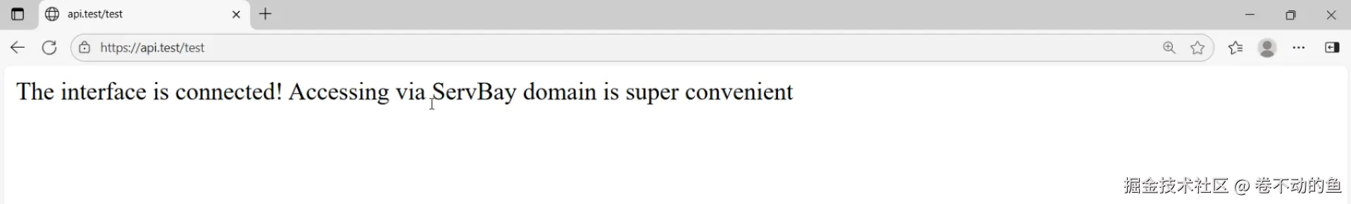 打开浏览器,直接输入api.test/test,回车就能看到返回结果,和用 IP 访问一样流畅。