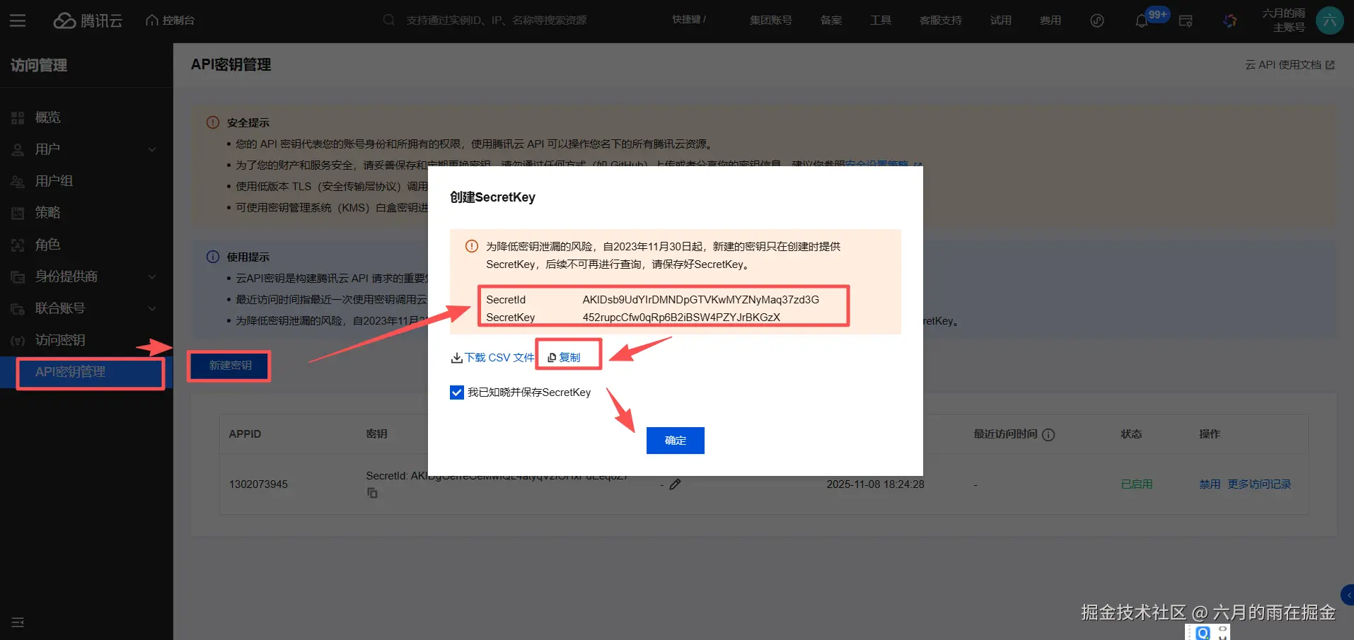 获取SecretId、SecretKey