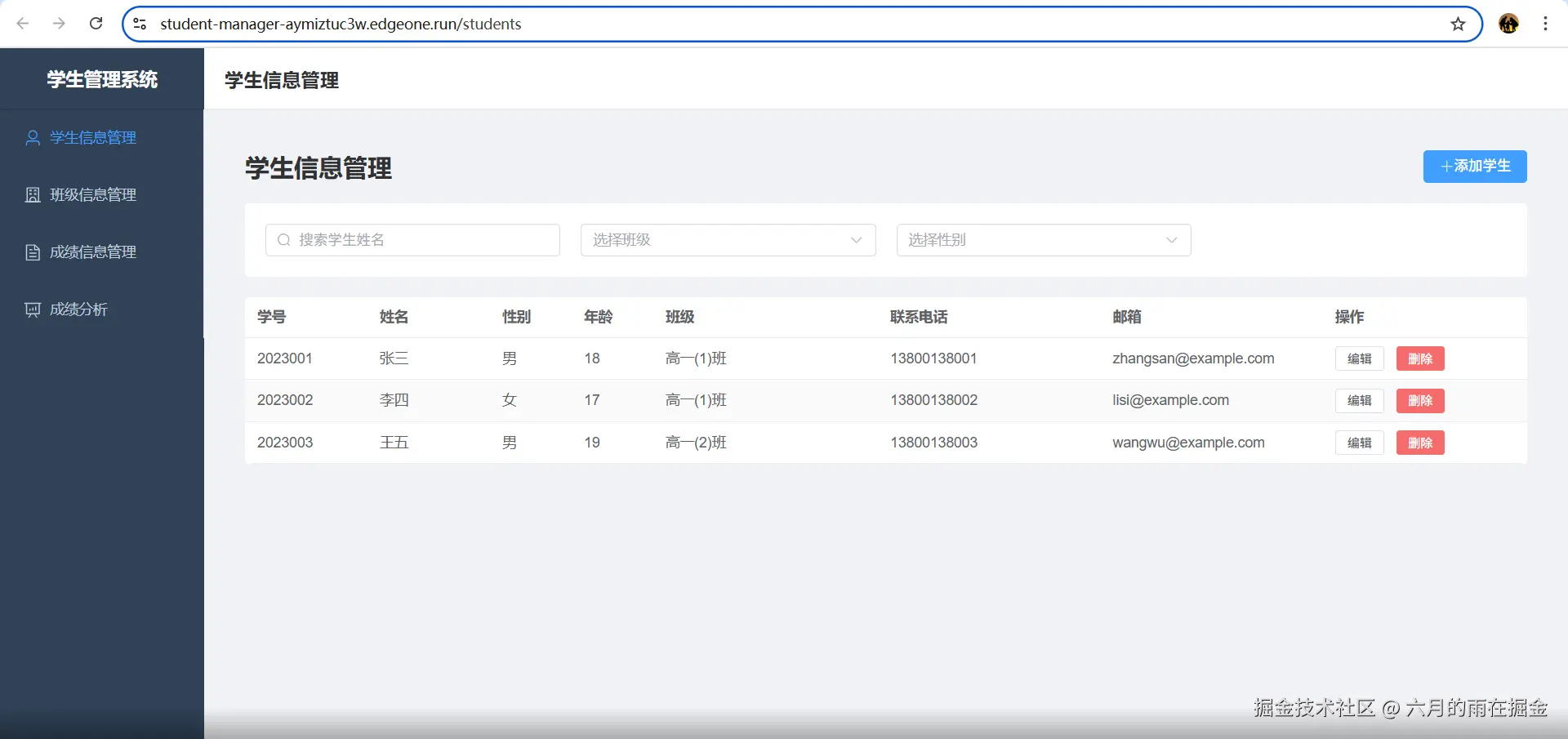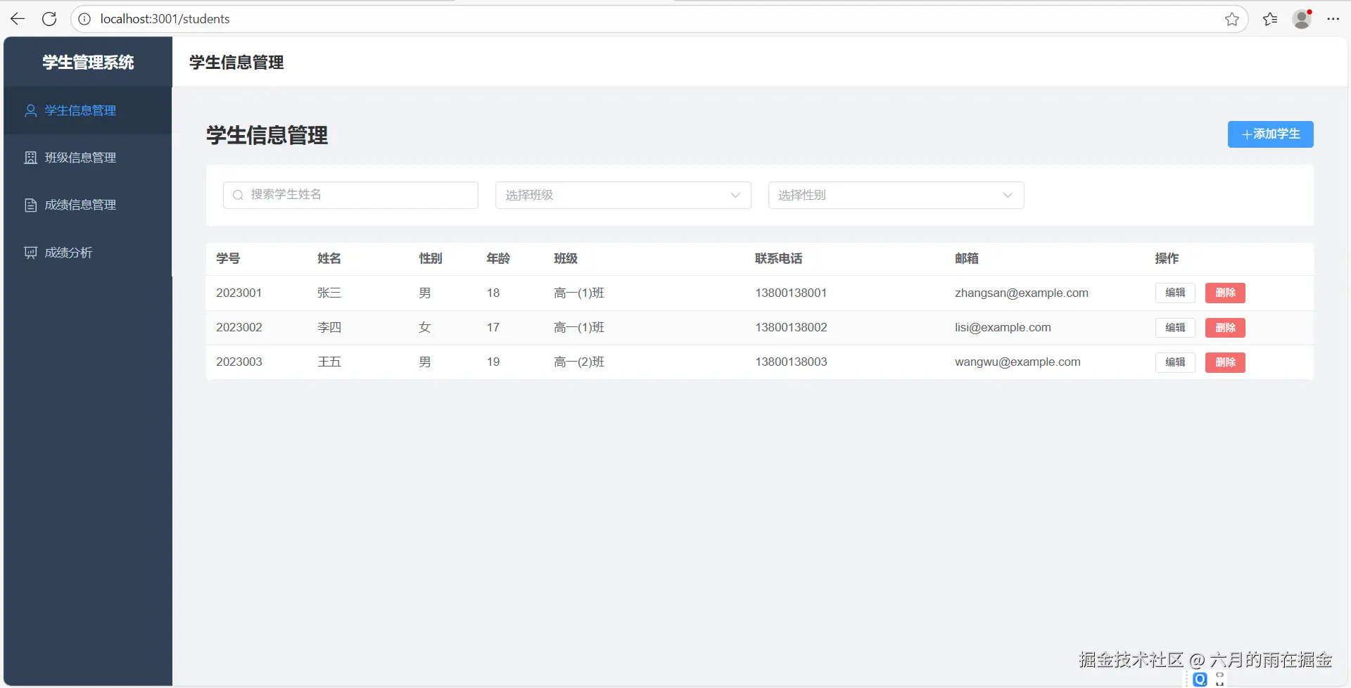 本地部署完成后,可以通过访问 localhost:3001 链接来查看我们的学生管理系统功能