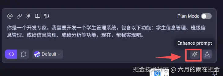 当让,如果你担心你的描述 AI 理解不明白,我们也可以选择【Enhance prompt】来让AI 对我们的需求内容进行润色,润色后的需求内容如下: