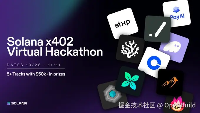 构建代理经济的机会来了。Solana X402 Hackathon 旨在基于 x402 构建新的创新工具、应用、基础设施和代理。你将构建开源基础设施和应用程序,以推动 Solana 上的代理经济。创建使 AI 代理能够自主交易的工具,开发创新的支付解决方案,或构建实用的代理应用程序。这是你定义自主代理如何与数字经济互动的机会。