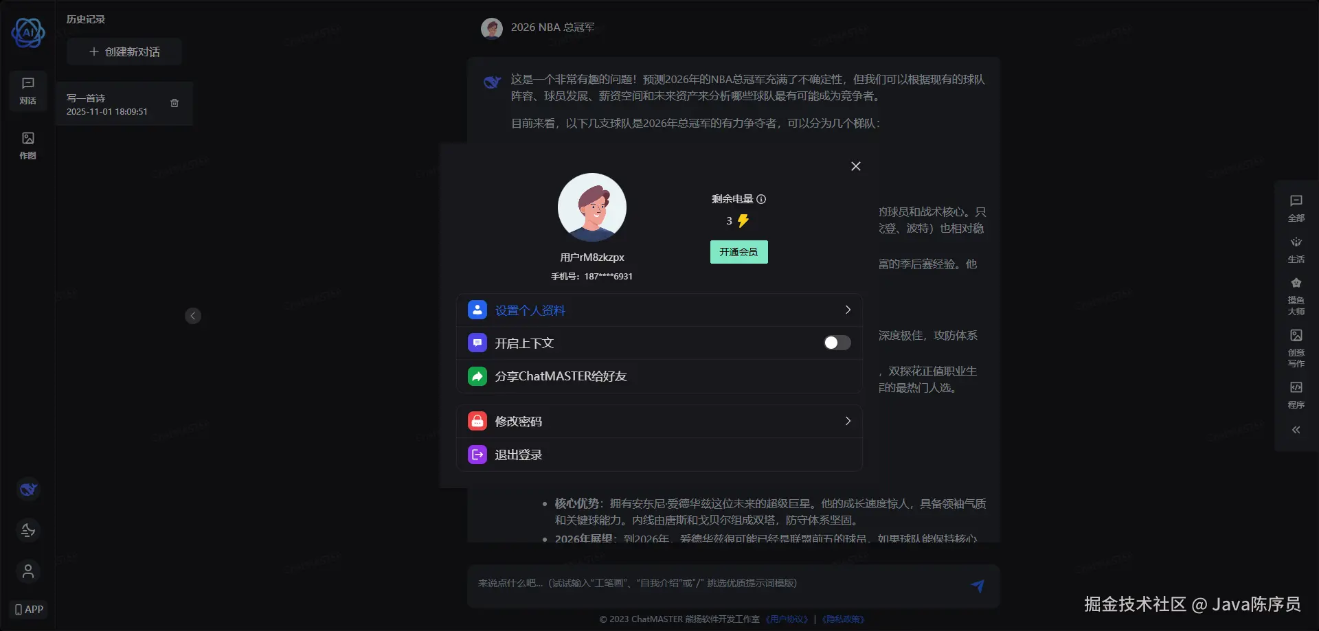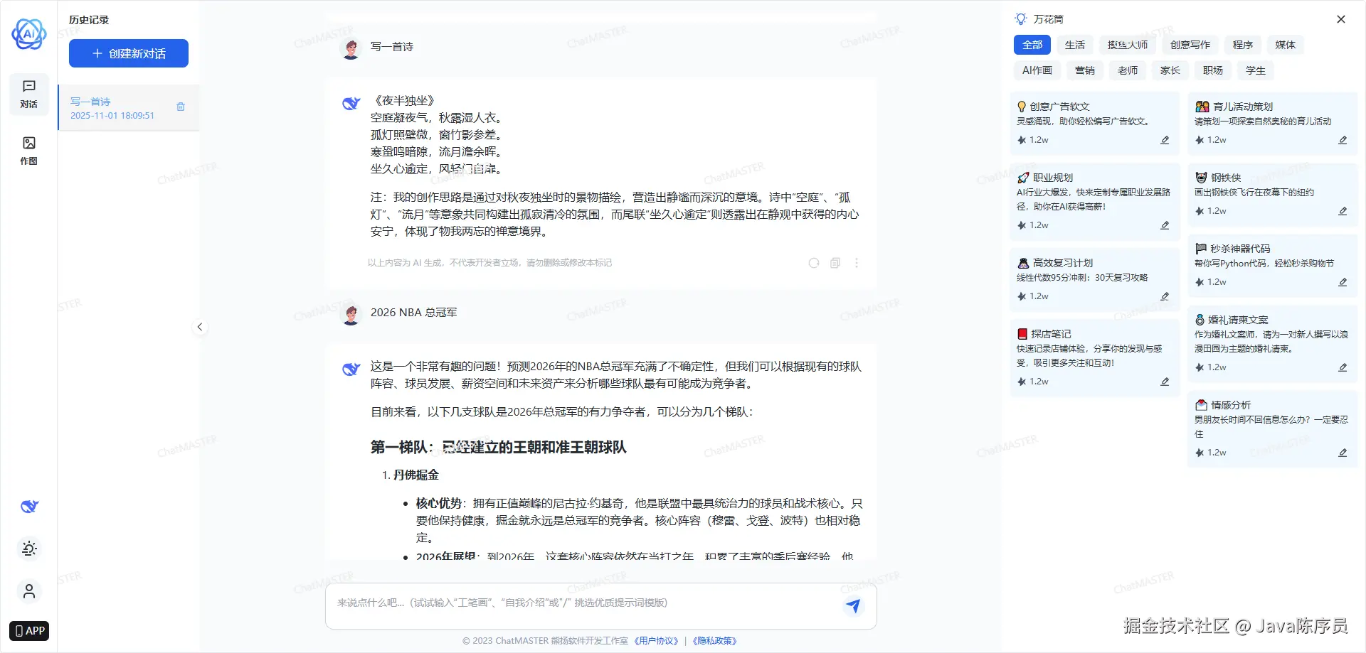 可以说,chat-master 提供了一套完整的 AI 对话管理平台服务,如果想自建一个 AI 助手平台,不妨试试~