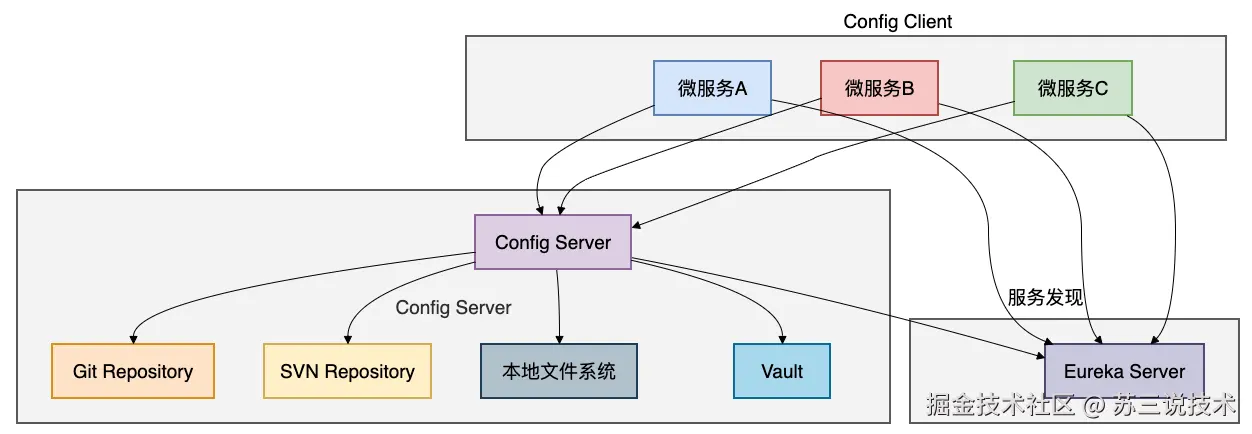 Spring Cloud Config采用经典的客户端-服务器架构:
