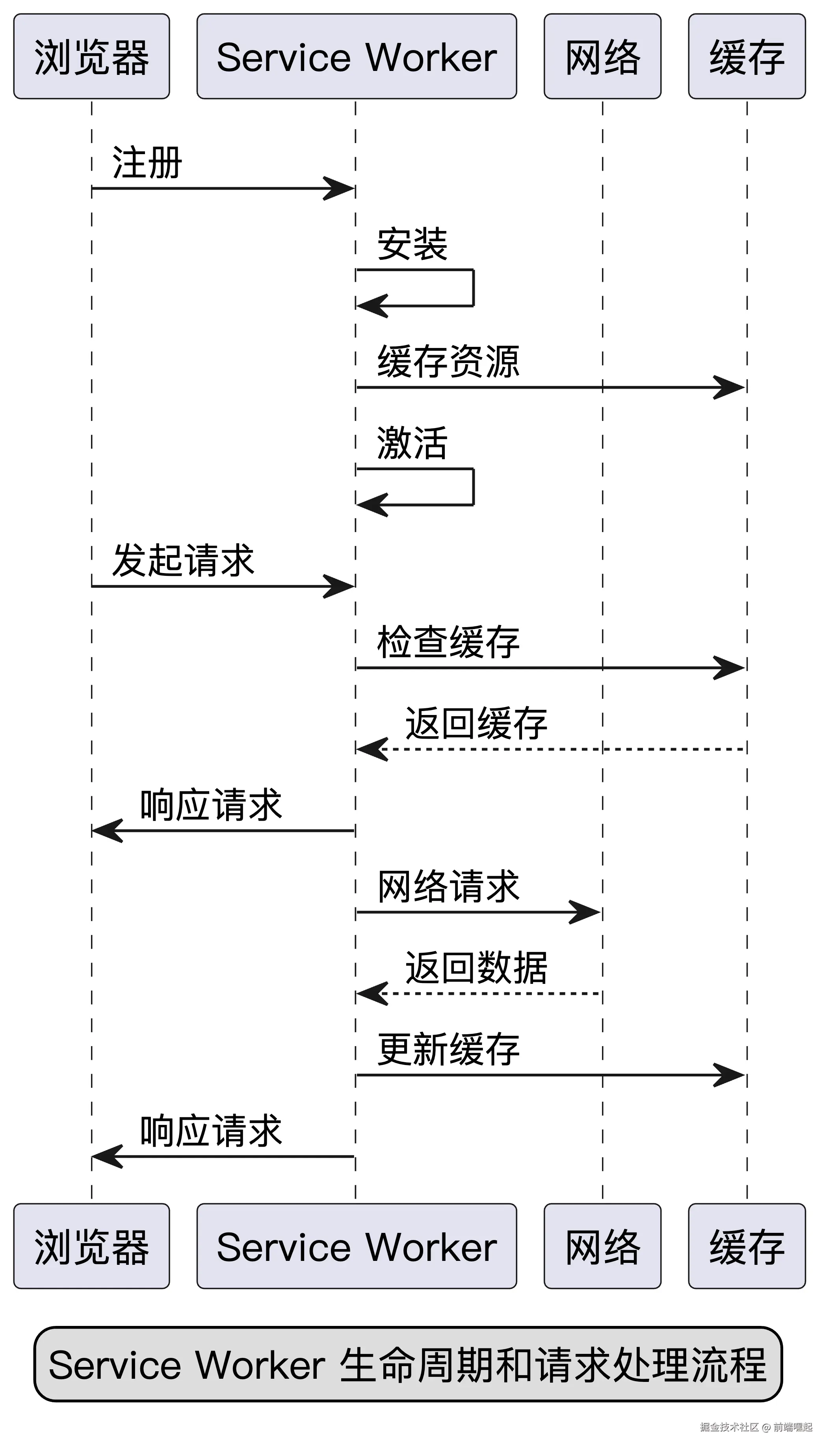 为了更直观地理解 Service Worker 的生命周期和请求处理流程,我们可以参考以下图表: