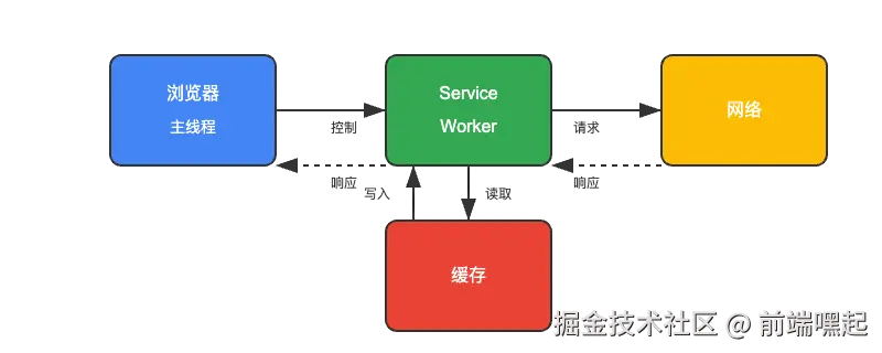 - 独立运行:Service Worker 运行在独立的线程中,不阻塞主线程
