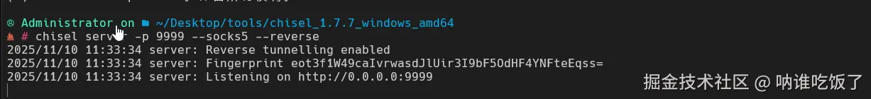 chisel server -p 9999 --socks5 --reverse