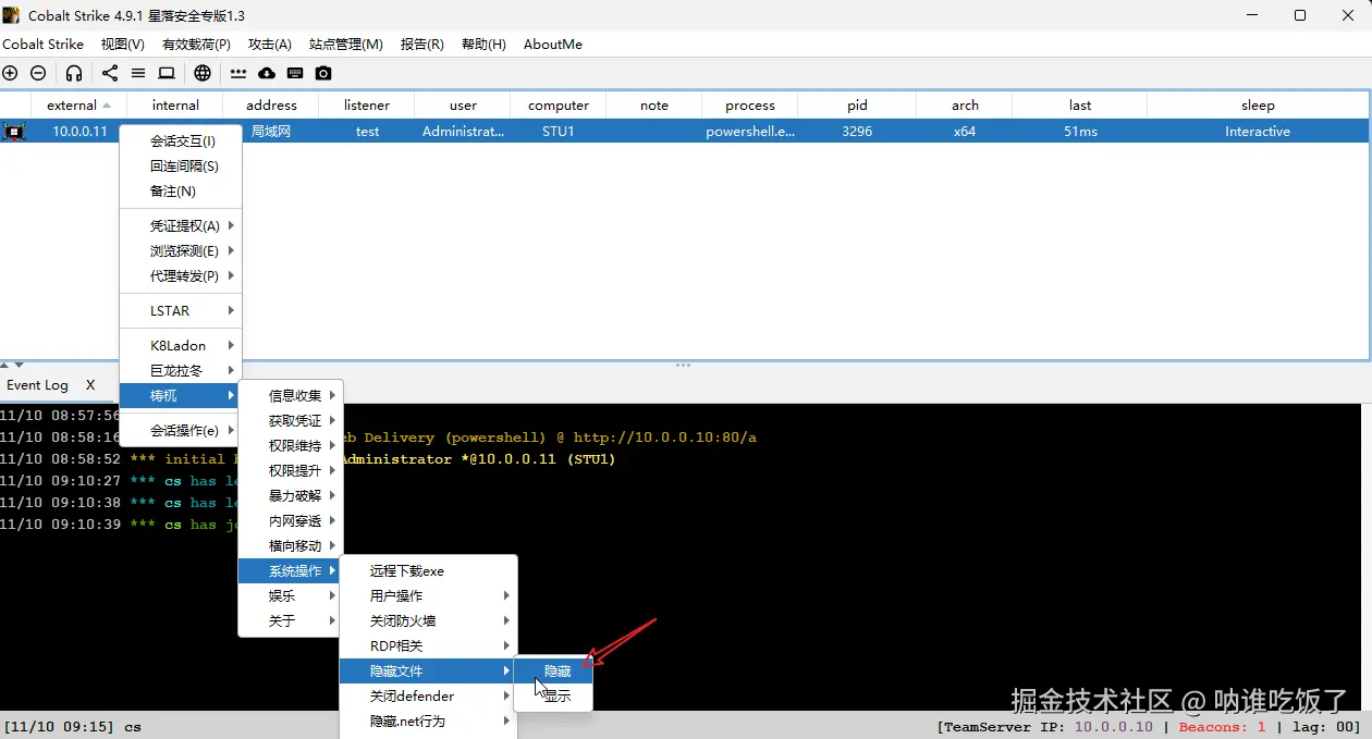 - 使用CS让目标主机上线(靶场环境):