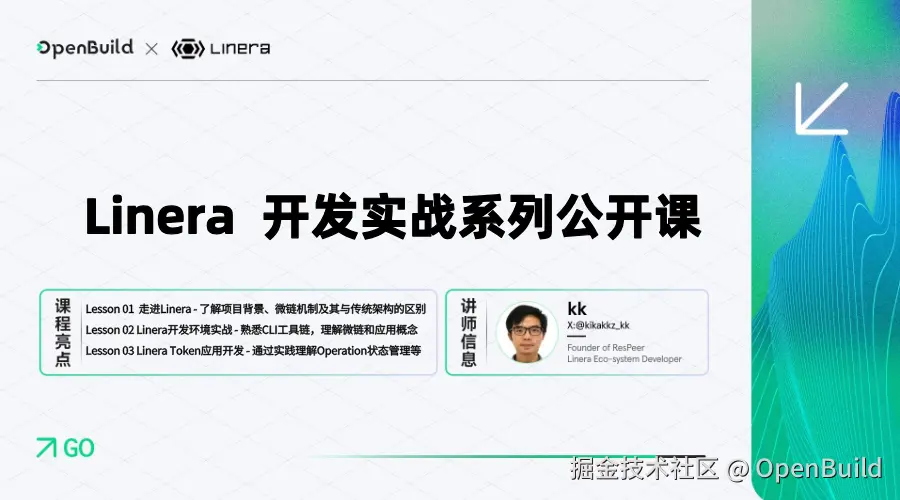 OpenBuild 社区联合 ResPeer 团队的 KK,推出 Linera 开发者实战系列免费课程。
