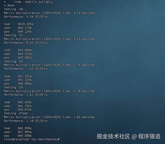 print(" • GCC编译器优化效果显著,Ofast级别性能提升760%")