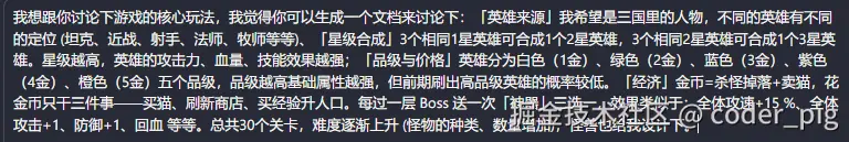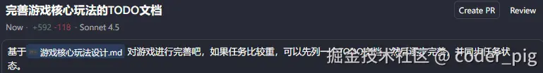 😄 "Vibe Coding" 文档先行,先跟AI讨论下,生成一个 "核心玩法设计" 的文档: