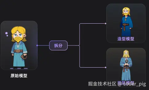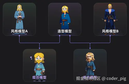 - 造型分离模型:学习造型能力,包括角色比例、外形等特征。
