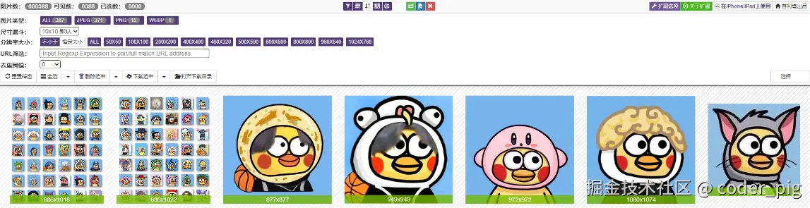 😏 既然是 "坤坤自走棋",那 "ikun小黄鸡" 自然少不了,网友自制的这类图还挺多,搜了下最全的貌似是389张,直接使用 ImageAssistant 浏览器插件采集所有图片,然后训练一个专门生成小黄鸡的 "ikun" 模型: