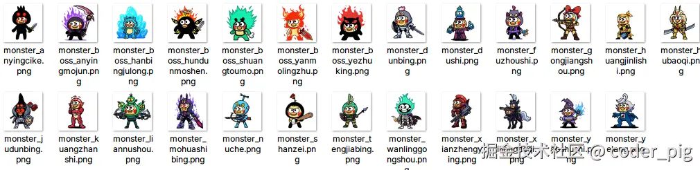 怪物 也是 "照葫芦画瓢",不过人物的朝向还需要做下调整 (向左),让AI写个脚本批量生成 "镜像反转" 后的图片: