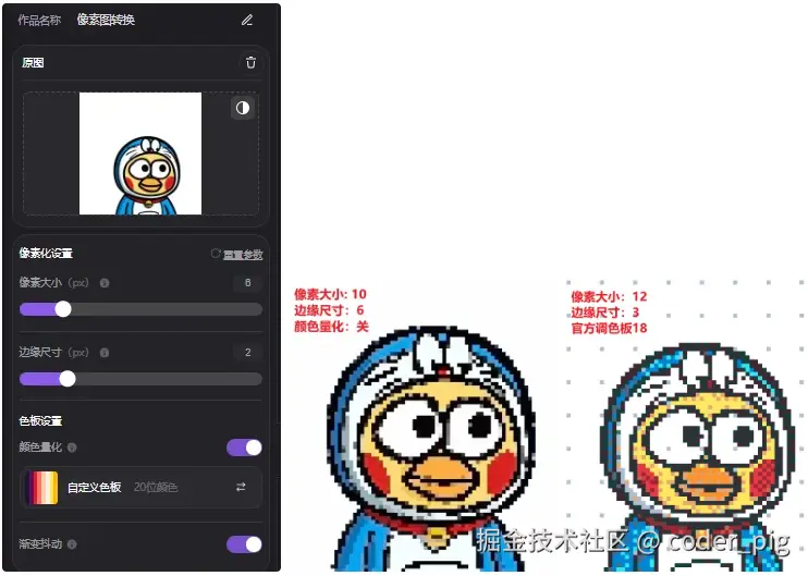 🤔 如果模型生成的像素不太满意,还可以直接使用「像素图转换」,将原图一键转换成 精准像素图: