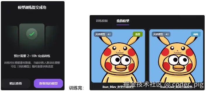 提交后,等模型训练完,会有消息通知,一般要2-10h,训练完会生成 两套模型: