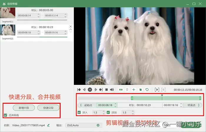 步骤3:视频录制完成后,可以直接调用数据蛙软件内置的 “高级剪辑” 工具。借助该工具,不仅能进行基础的视频剪辑 (如裁剪画面边缘、删除冗余片段) ,还能实现视频分段切割 (如按指定时间节点拆分内容) 。
