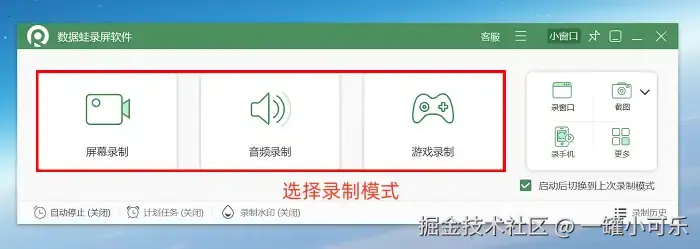 使用数据 蛙录屏软件的操作步骤如下:
