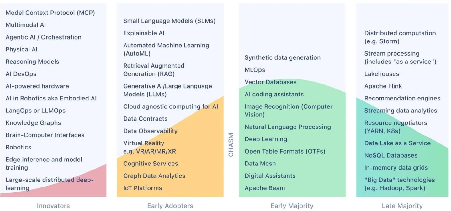 其他新增至“创新者”类别的趋势还包括 推理模型(Reasoning Models) 与 AI DevOps。