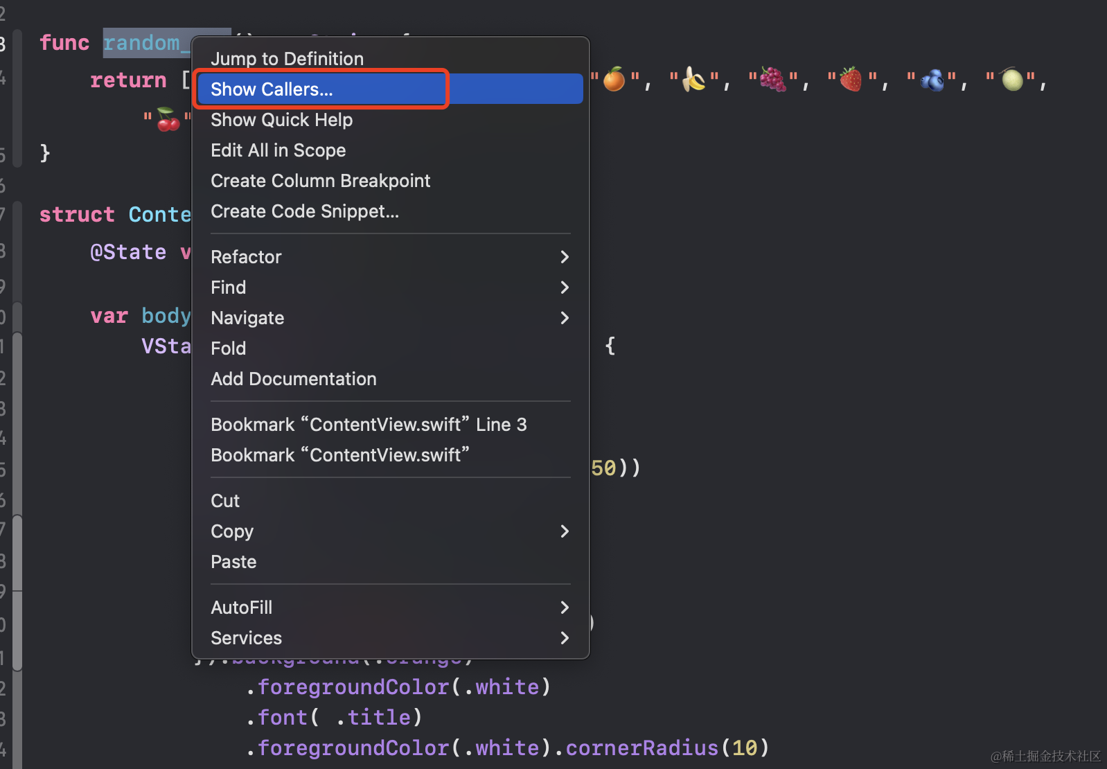 Control + Click 可以查看这个方法调用者在哪里: