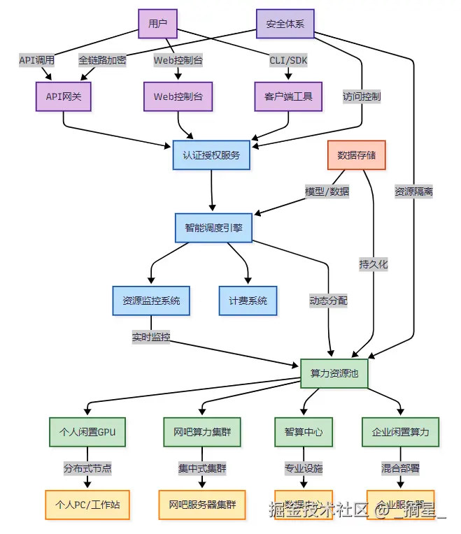 | 资源来源 | 整合全国分散闲时算力,包括个人/网吧/智算中心 | 自有数据中心,资源集中 | 企业自购硬件,资源固定 |