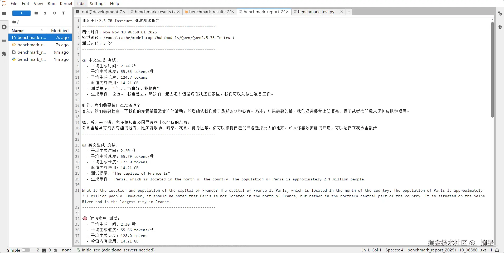 生成的基准测试报告:
