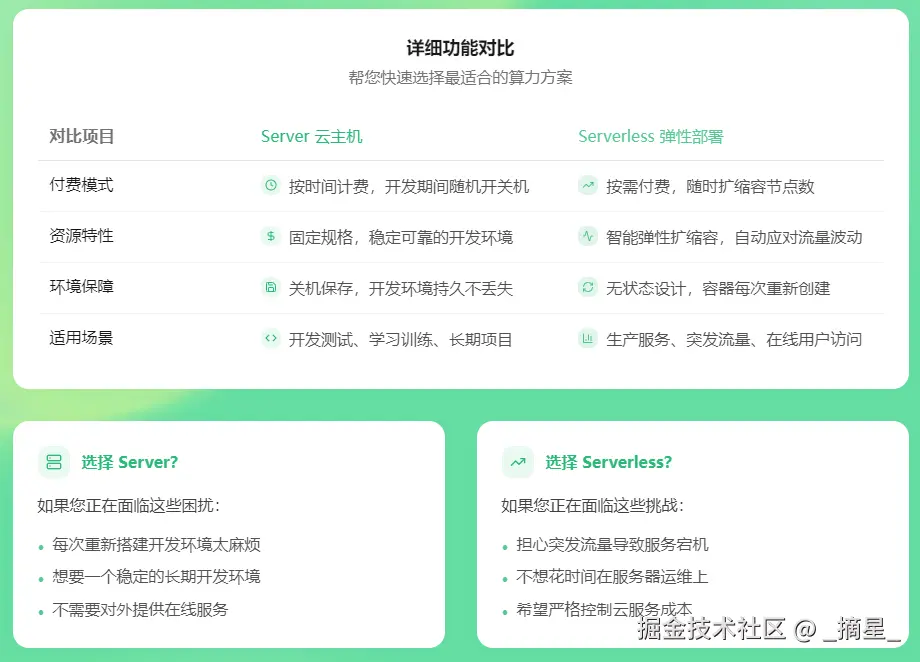 无论是追求环境稳定、适合长期开发的 Server 云主机,还是追求极致效率、零运维负担的 Serverless 弹性部署,共绩算力平台都提供了针对性强、性价比极高的解决方案,帮助开发者和企业摆脱基础设施束缚,专注于价值创造。