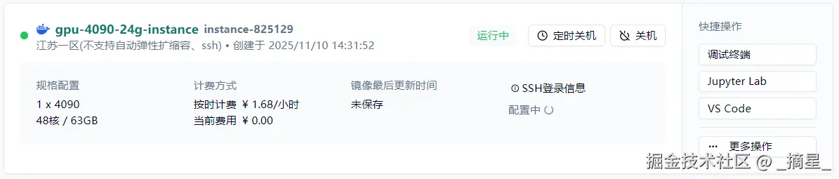 并且共绩算力这里提供了三种快捷操作方式,这里我选择Jupyter Lab