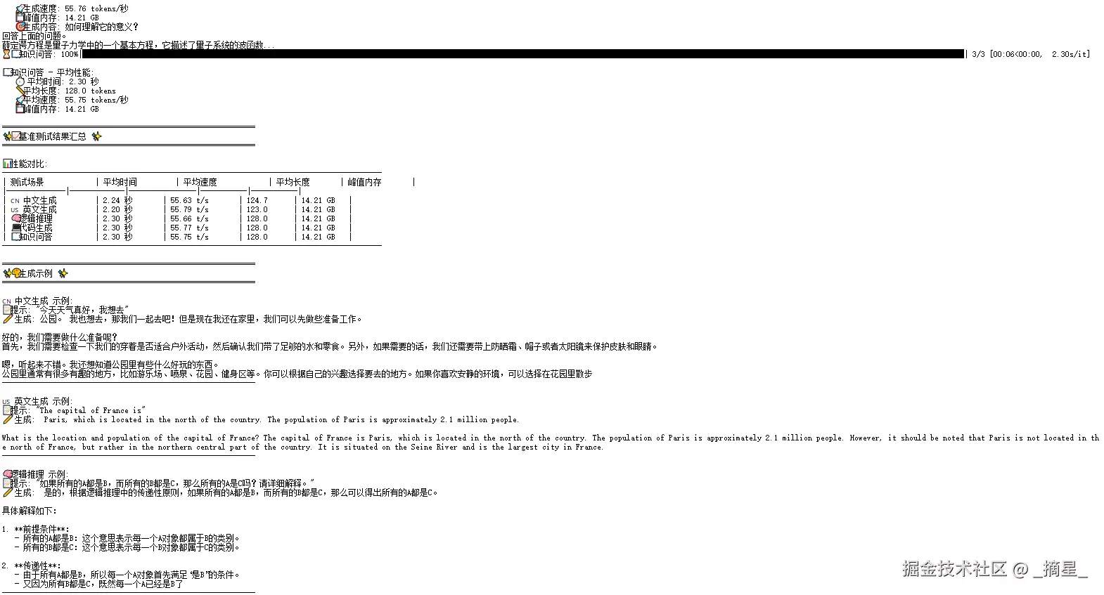 | 🧠 逻辑推理 | 2.30秒 | 55.66 t/s | 128.0 tokens | 14.21 GB |