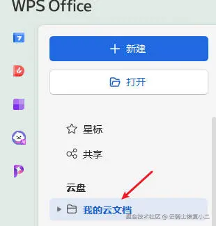 1、打开WPS软件,点击左侧 【我的云文档】。
