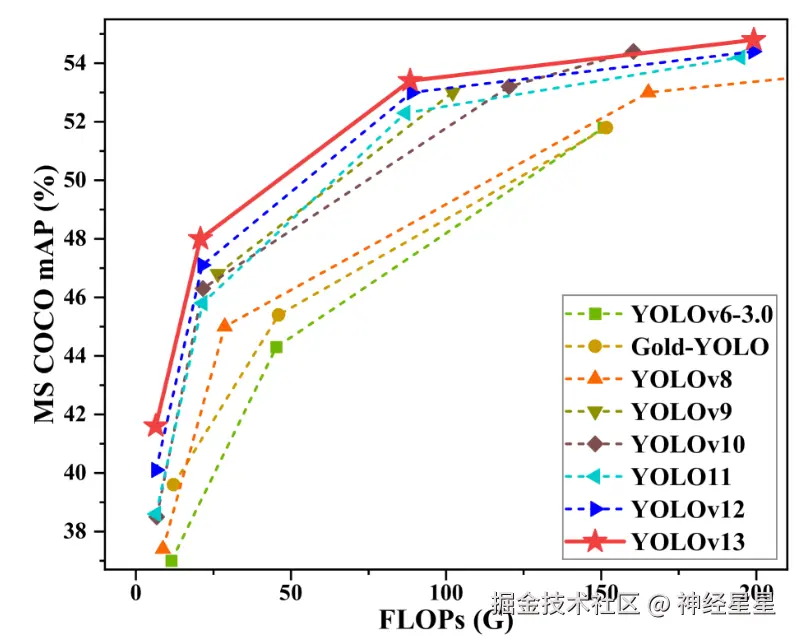 为解决上述挑战,YOLO 系列迎来最新迭代版本 YOLOv13。 新版本引入了基于超图的自适应相关性增强(HyperACE)机制,能够自适应地利用潜在的高阶相关性,克服了先前方法仅限于基于超图计算进行成对相关性建模的限制,实现了高效的全局跨位置和跨尺度特征融合与增强。在继承 YOLO 系列实时检测优点的基础上,新版本还引入了高阶语义建模、轻量化结构重构等一系列新机制,将传统的基于区域的「成对交互」建模扩展到了全局高阶关联建模。