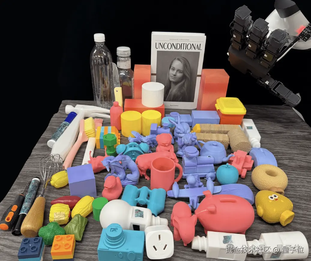 - 跨物体精准操控:从微小零件到大书本、长棍、复杂几何体,首次实现跨类别、跨尺寸、跨姿态的稳定旋转。