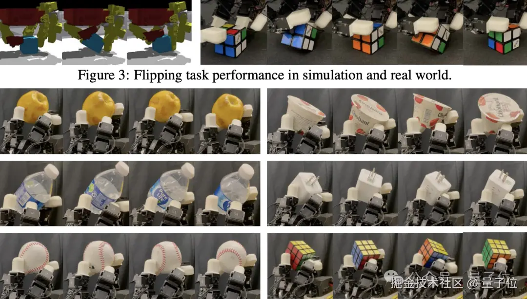 不仅首次在手掌朝下的姿态下,实现了 10–16cm 长物体沿长轴的空中完整旋转,还能够稳定泛化到更多、更具挑战性的物体类型。