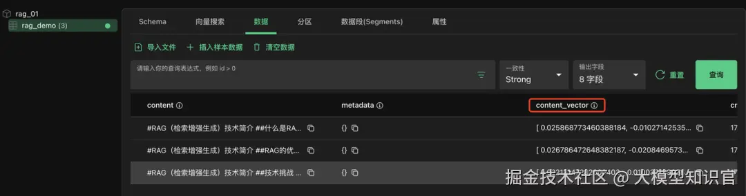 举例来说,向量字段就类似于传统数据库中的ID或某个字段,然后还会有一个原始文档的字段;当根据相似度计算检索到某条记录之后,会把原始文档里的内容传给模型做生成。