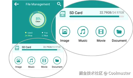 有很多优秀的Android手机清理应用可以帮助您清理缓存,提升三星平板电脑或手机的运行速度。Coolmuster Coolmuster Android Assistant ( Android版)就是其中之一。它可以扫描并清理所有不必要的文件,例如垃圾文件、崩溃文件、残留缓存、隐私记录等等。只需轻轻一点,即可释放三星平板电脑或手机的内存。此外,使用此应用,您可以轻松查看和管理三星手机的存储空间,包括可用内存、已用内存和可清理内存。