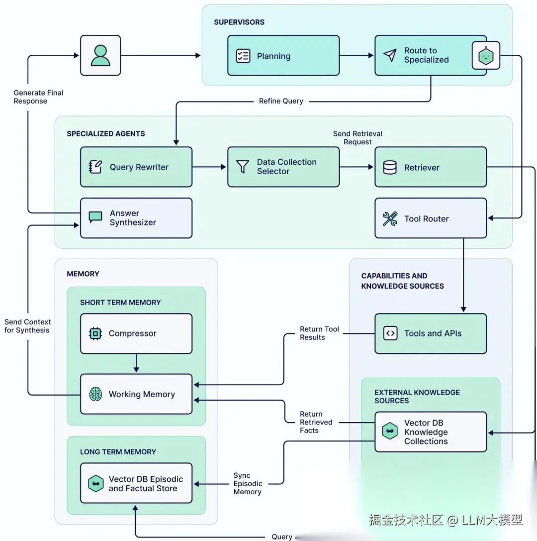 实际上,大多数现代系统使用混合方法,将短期记忆的速度与长期记忆的深度相结合。一些高级架构甚至引入了额外的层: