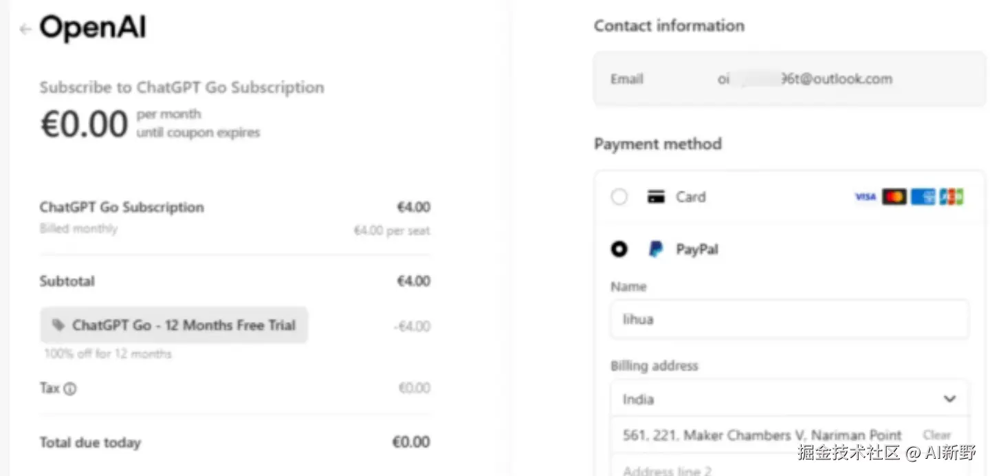 就是利用这个规则漏洞,去免费领取一年的ChatGPT Go会员。